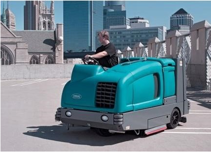 ●坦能 M30 駕駛式掃洗一體機只需一次通過即可完成清潔,降低了使用成本